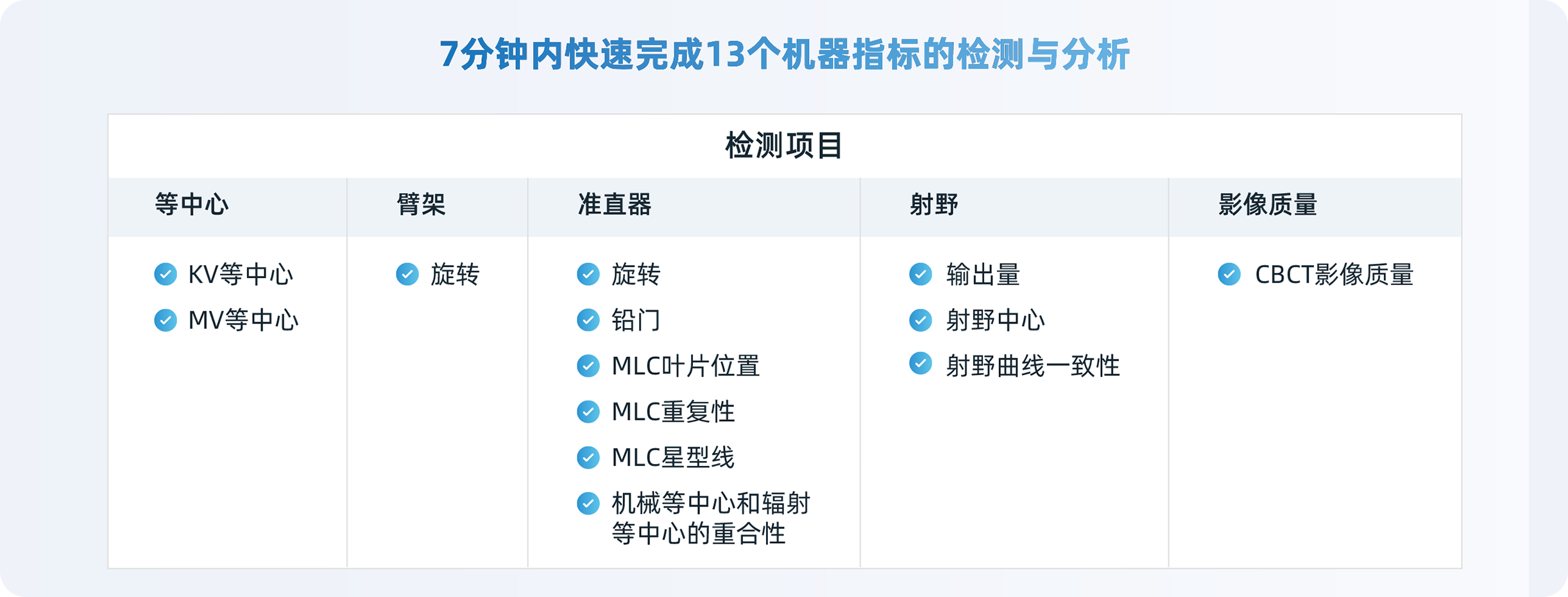 · 提供专属检测计划,用户仅需将模体正确摆位,进入机房打开采集程序,运行检测计划,即可实现机器的快速检测